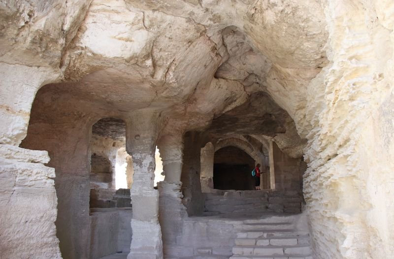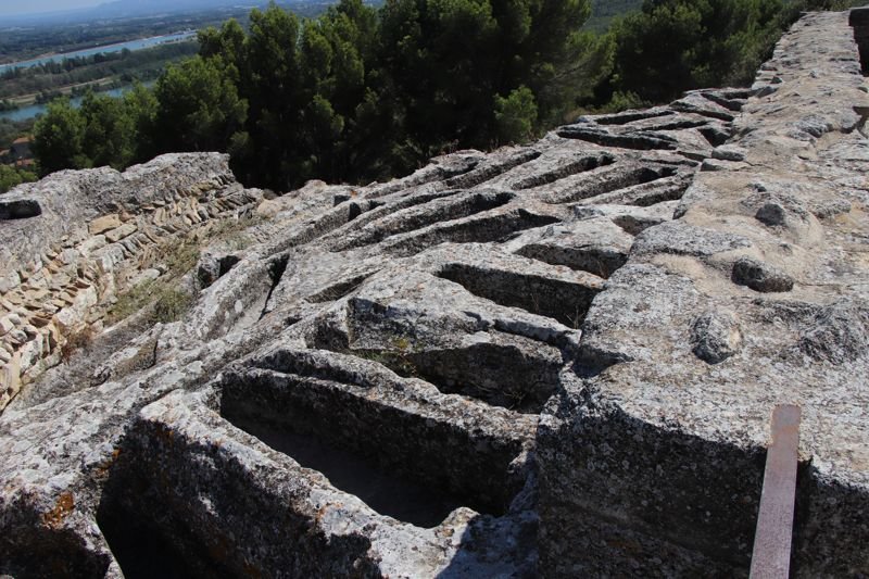 La visita a la abadía de Saint-Roman es diferente a las visitas arqueológicas que solemos hacer y realmente muy interesante. No hemos encontrado las huellas de florecientes civilizaciones ni grandes imperios, pero si el empeño humano por labrar la roca y hacer de ella un lugar especial.