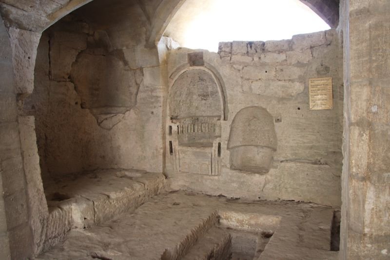 Excavadas en la roca encontramos una serie de celdas pertenecientes a los monjes que vivián en el lugar. Las celdas situadas en el vértice sur son las mejores conservadas y donde podemos admirar el trabajo realizado para hacer de la roca y lugar habitable.