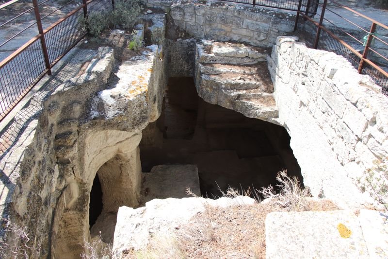 Sobre el propio cementerio, y por tanto destruyendo parte de las tumbas existentes, se excavó en el siglo XIV d.C. una cisterna de 140 m3 para almacenar agua de lluvia.